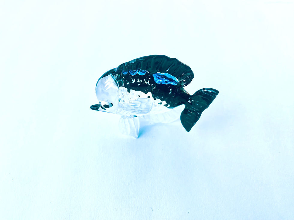 Glass Hand Painted Fish Figerine - Black & Blue Spotted